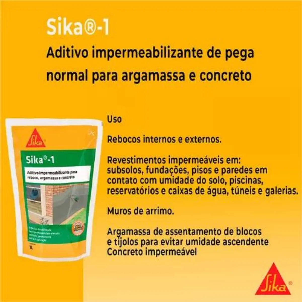 Aplicações: alicerces, paredes, caixas d’água, piscinas, reservatórios e áreas sujeitas à umidade.