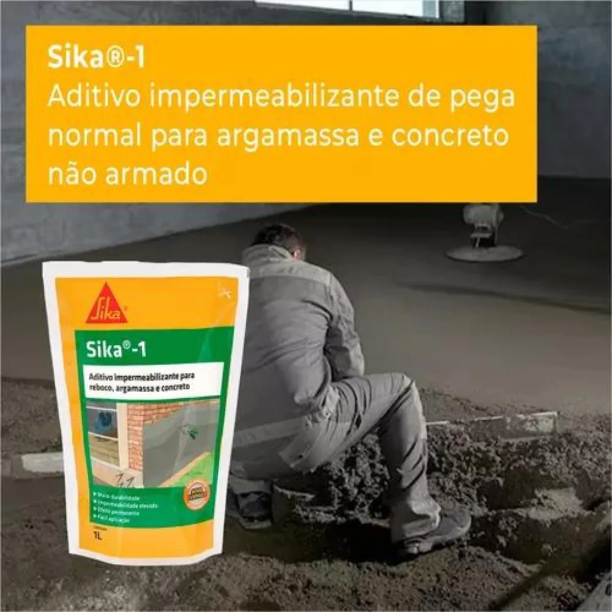💧 ADITIVO IMPERMEABILIZANTE SIKA 1L – PARA REBOCO, ARGAMASSA E CONCRETO